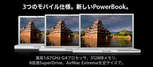 PowerBookG5の発表までまだまだかかりそうなので繋ぎなんでしょうか。いまいち盛り上がりに欠ける内容だな…。