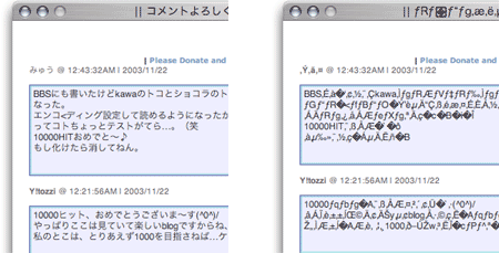コメントの中に「ー(音引き)」などが入っていると文字化けして置き換えられちゃうのは前々から分かっていた現象なので今更言わないけど、今度はコメント表示画面全体が化けるという。