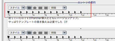 パラグラフフォーマットバーを表示するには「iBlog→環境設定」で設定をONにしてください。