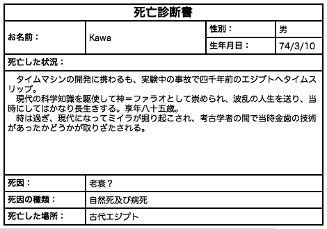 の「死に様占い」にて診断…。