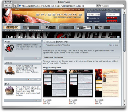 これを使えば一時的に自分のBlogがSPIDER-MAN一色になるってもの。