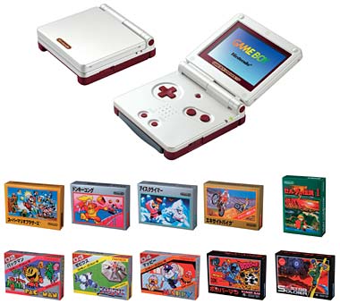 任天堂株式会社(代表取締役社長:岩田 聡、本社:京都市南区)は、ファミコン生誕20周年にあたり、本年2月14日(土)、GBA用ゲームソフト「ファミコンミニ」全10タイトルを発売いたします。これは、「スーパーマリオブラザーズ」等、ファミリーコンピュータが誕生した当時のファミコンソフトをゲームボーイアドバンス用ゲームソフトとして発売するシリーズです。これに併せて、同日「ゲームボーイアドバンスSP "ファミコンカラー"」を発売する事も決定しました。