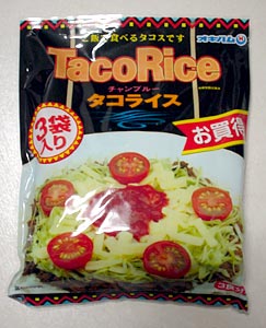 タコスの具(タコスミート)をご飯の上にかけて、その上にレタスの千切り、トマト、チーズを乗せて、上からホットソース(サルサソースみたいなの)をかけて食べるんです。