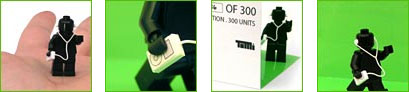 PodBrix、iPodシルエット広告のLEGOフィギュア iPodloungeでは、PodBrixがiPodのシルエット広告からインスパイアされたLEGOフィギュア「Minifig - 1K Brix」を発売していると伝えています。300個限定で、価格は16.99ドルです。